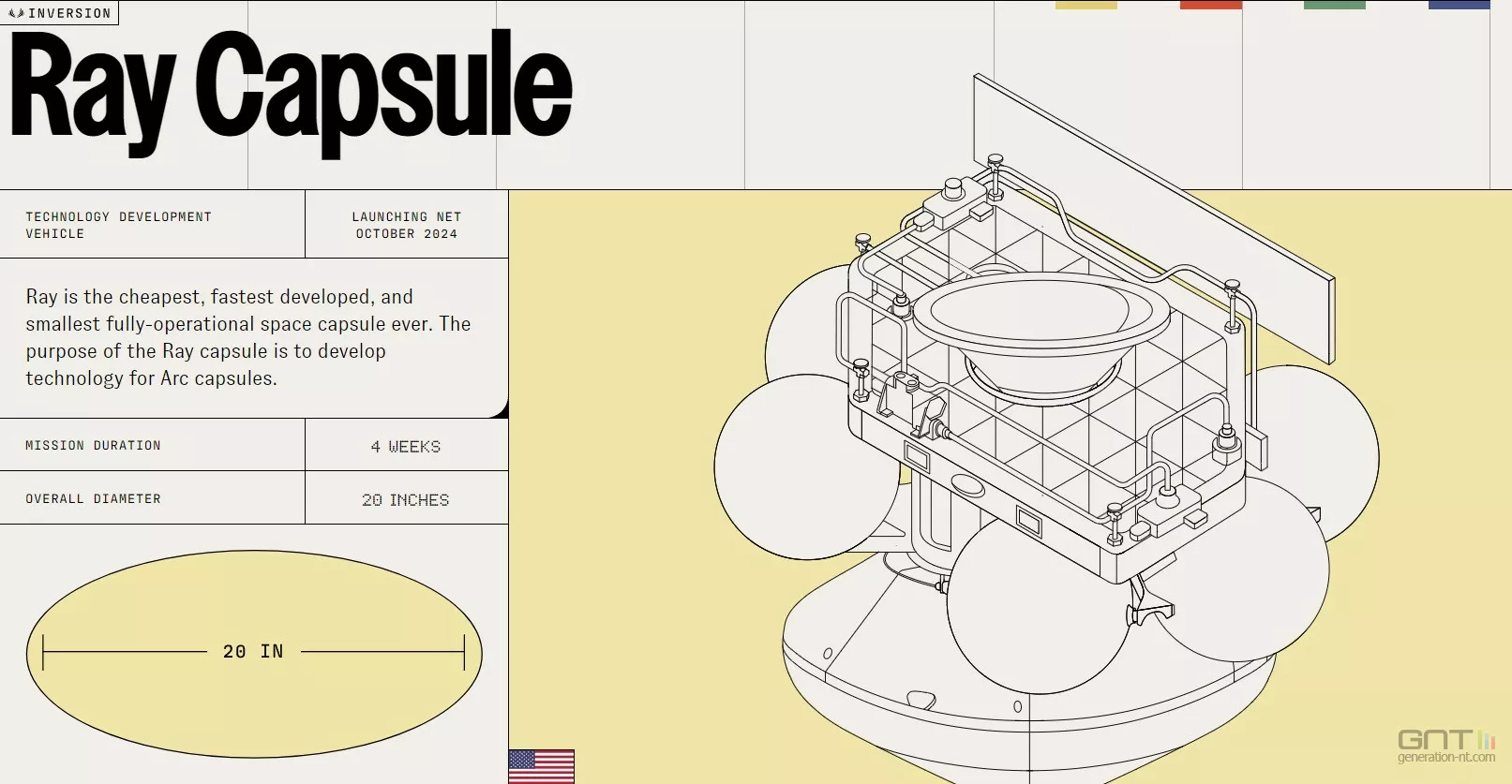 Elle travaille déjà sur un premier modèle de capsule baptisé Ray qui fera une première démonstration réelle en octobre après avoir été envoyé en orbite via un lanceur Falcon 9 de SpaceX.