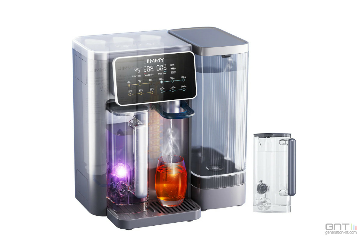 L'écran tactile intelligent permet de surveiller en temps réel la qualité de l'eau et la durée de vie du filtre. De plus, le JIMMY R9 est livré avec deux carafes en Tritan sans BPA et une stérilisation UV intégrée empêche la prolifération bactérienne pour garantir une eau saine. C'est aussi un geste écologique fort, permettant d'économiser l'équivalent de 3 600 bouteilles en plastique par an.