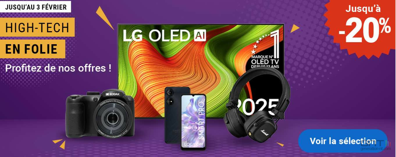 Jusqu’au 3 février, Leclerc lance son opération "High-Tech en Folie" avec des remises allant jusqu'à -20%. L'enseigne privilégie ses adhérents : munissez-vous de votre Carte E.Leclerc pour débloquer des prix spéciaux et cumuler des Tickets E.Leclerc sur une large sélection de smartphones, PC et TV.