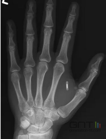 "Je vis ma propre dystopie cyberpunk", a-t-il commenté sur Facebook, entre amusement et désarroi. L'artiste se retrouve avec un bout de technologie inerte logé entre son pouce et son index.