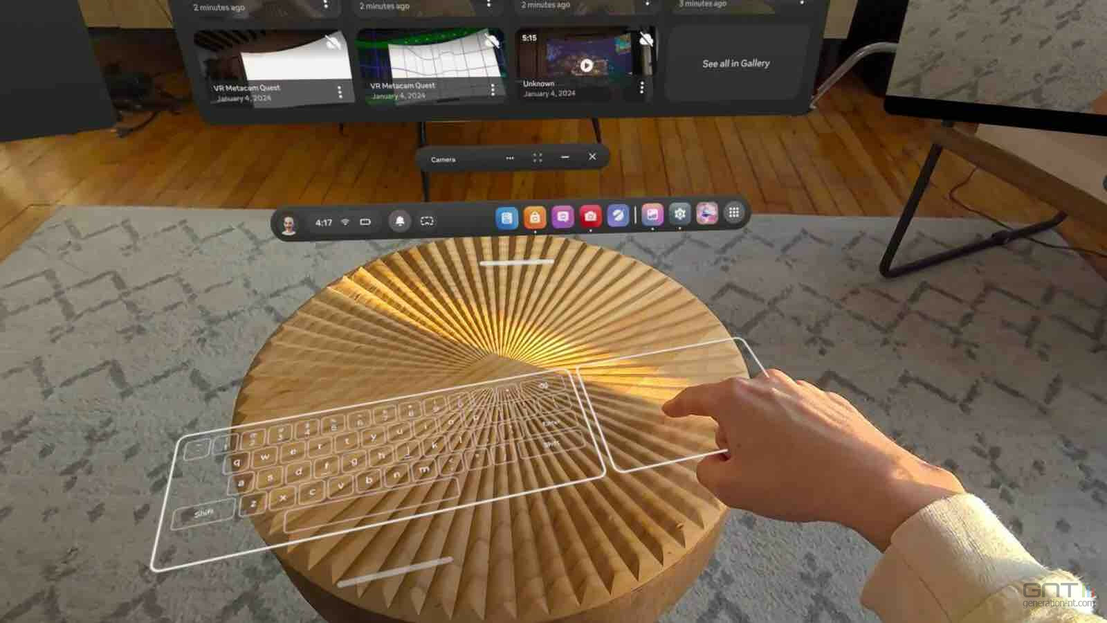 En quelques secondes, les caméras du casque analysent la position des mains et projettent un clavier virtuel parfaitement aligné et à la bonne échelle. Cette calibration instantanée permet de retrouver la sensation de taper sur un support physique, améliorant considérablement le confort et la précision. Un pavé tactile virtuel est également inclus pour faciliter la navigation dans les interfaces.