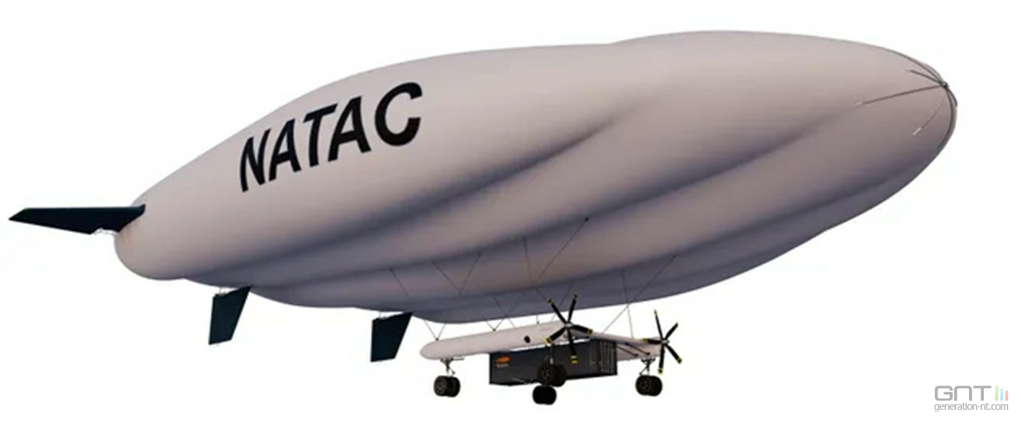 La Navette Aérienne de Transport Automatique de Containers, ou NATAC, n'est ni un avion-cargo ni tout à fait un dirigeable. Cet aéronef hybride, plus léger que l'air, est conçu pour transporter jusqu'à 30 tonnes de fret.