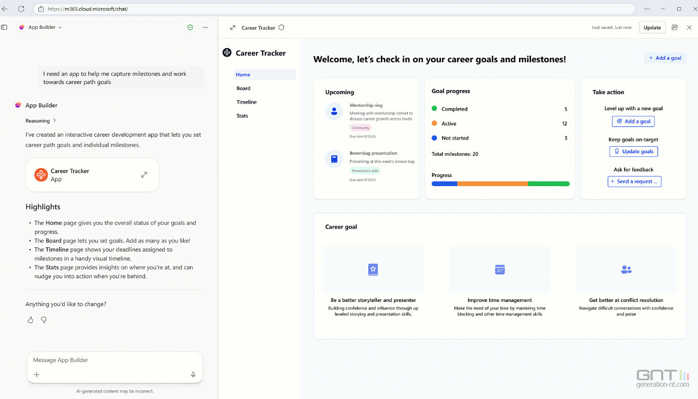 Avec App Builder. Les utilisateurs peuvent décrire en langage naturel l'application dont ils ont besoin. " Décrivez ce dont vous avez besoin en langage naturel, et Copilot vous aide à le construire. "
