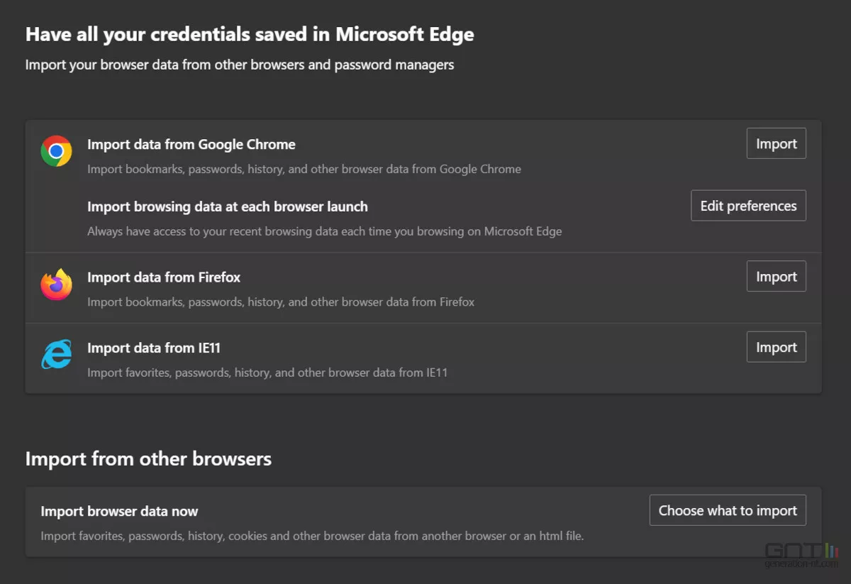 Si son ampleur n'est pas déterminée, Microsoft plaide donc le bug lors de la configuration de Windows. En l'occurrence, les données (signets, mots de passe, historique et autres) peuvent être importées en continu depuis Chrome (socle Chromium en commun), tandis que c'est à la demande depuis Firefox.