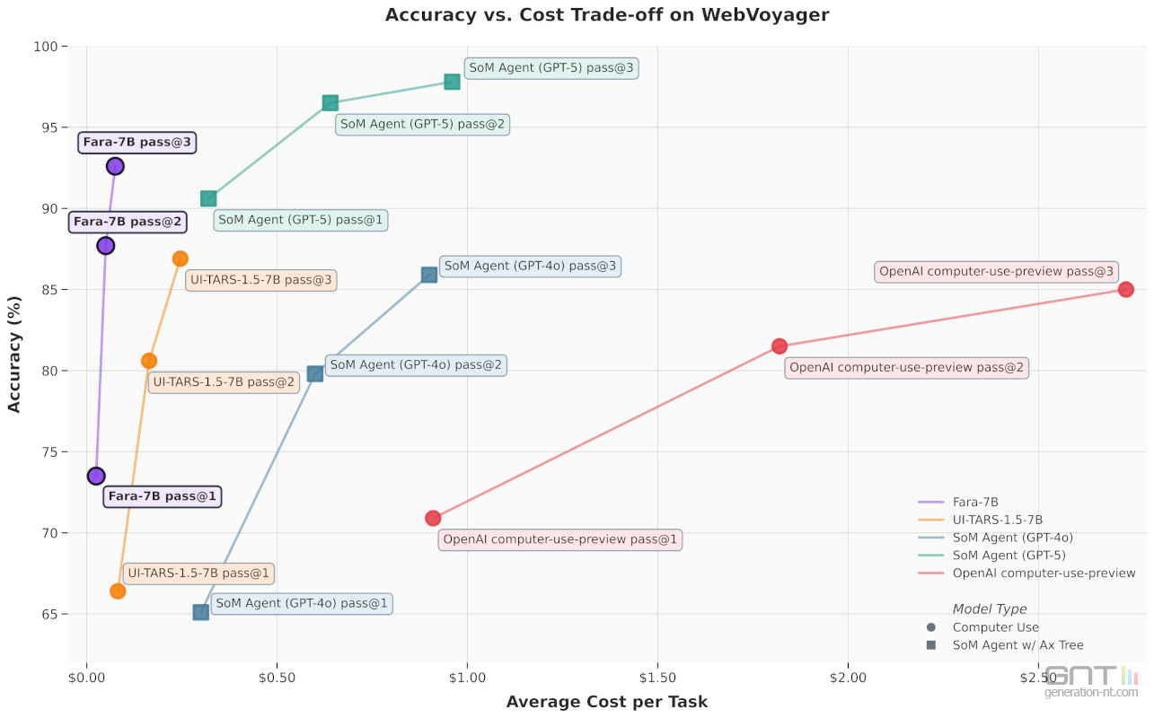 Des évaluations sur des benchmarks comme WebVoyager montrent que Fara-7B surpasse même des modèles bien plus grands, y compris des versions de GPT-4o configurées pour la navigation web.