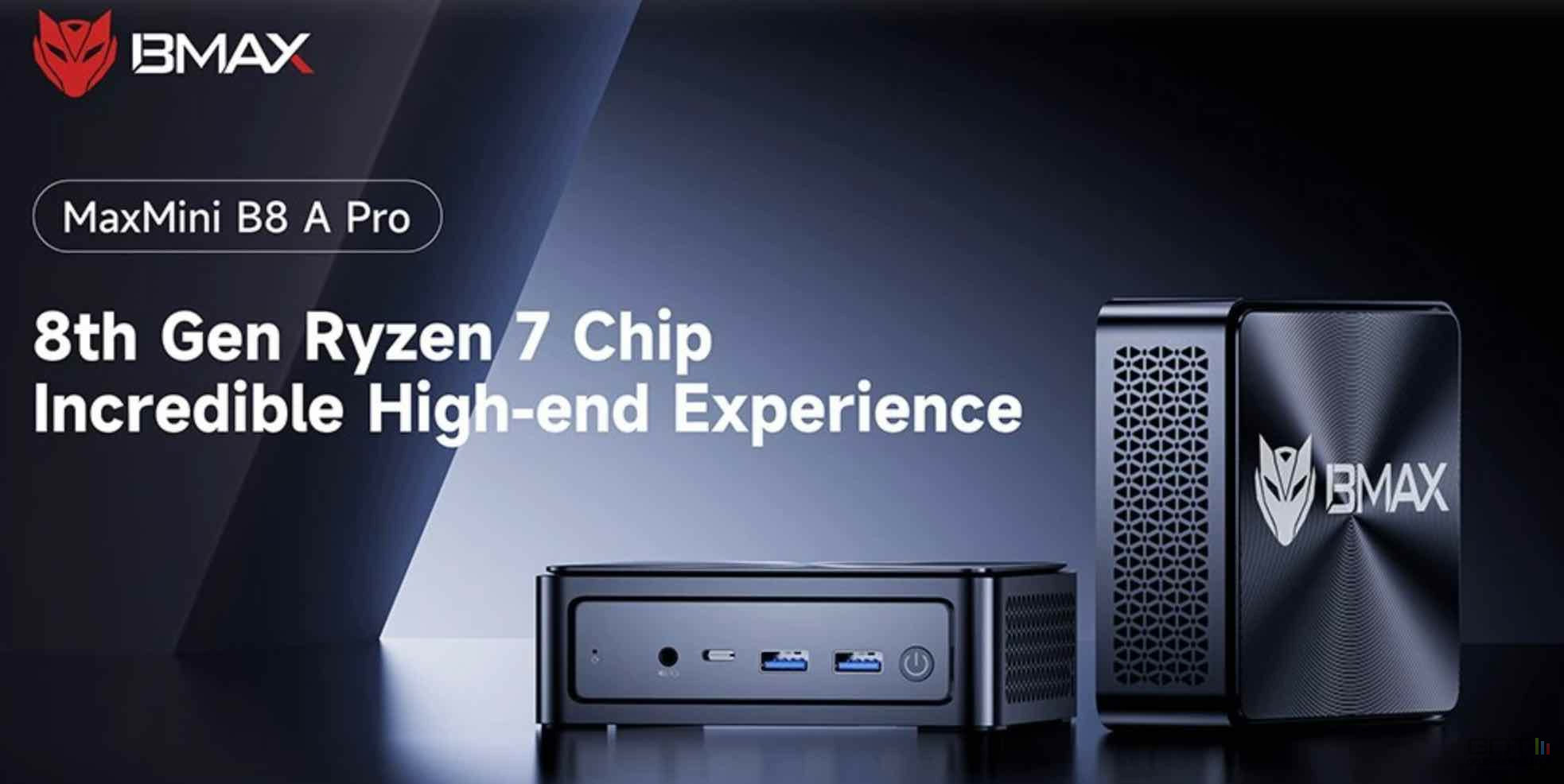 • BMAX B5 A Pro à 349 € avec le code NNNBONPLANMBB5 (Ryzen 7 5825U 8 cœurs jusqu'à 4,5 GHz, Radeon Graphics, RAM 16 Go DDR4, SSD 512 Go, triple affichage 4K, prise en charge Dynamic HDR, Wi-Fi 5, Bluetooth 5.0, 1x RJ45, Windows 11)