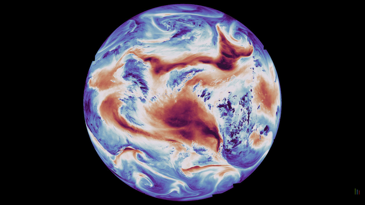 Parallèlement, le satellite réalise une analyse hyperspectrale de l'humidité atmosphérique sur près de 1 700 canaux infrarouges. Cette technique permet de visualiser les masses d'air sec, notamment au-dessus du Sahara, et les zones à forte humidité, pour la formation des tempêtes.