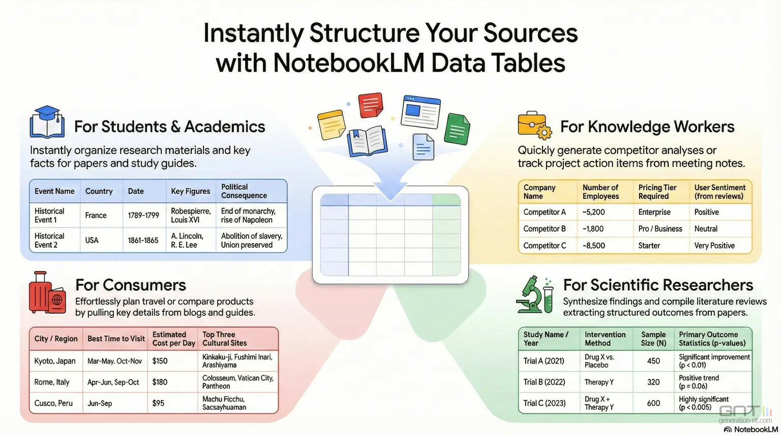 Le principe de Data Tables dans NotebookLM