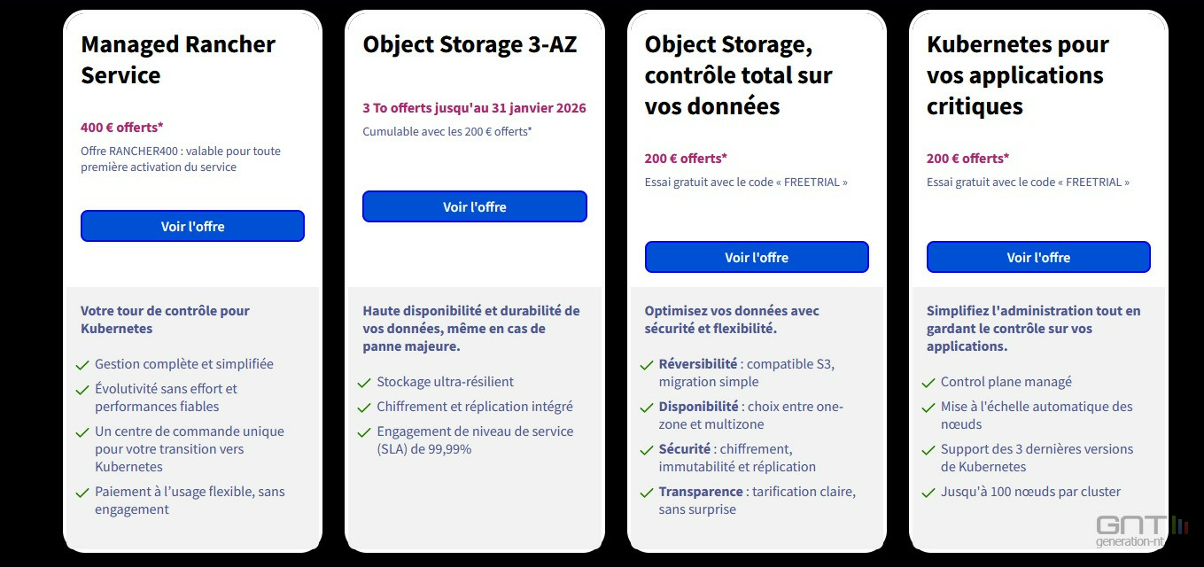 Et pour unifier l'administration de clusters Kubernetes, OVHcloud fait une remise de 400 € pour une première activation sur son offre Managed Rancher Services.