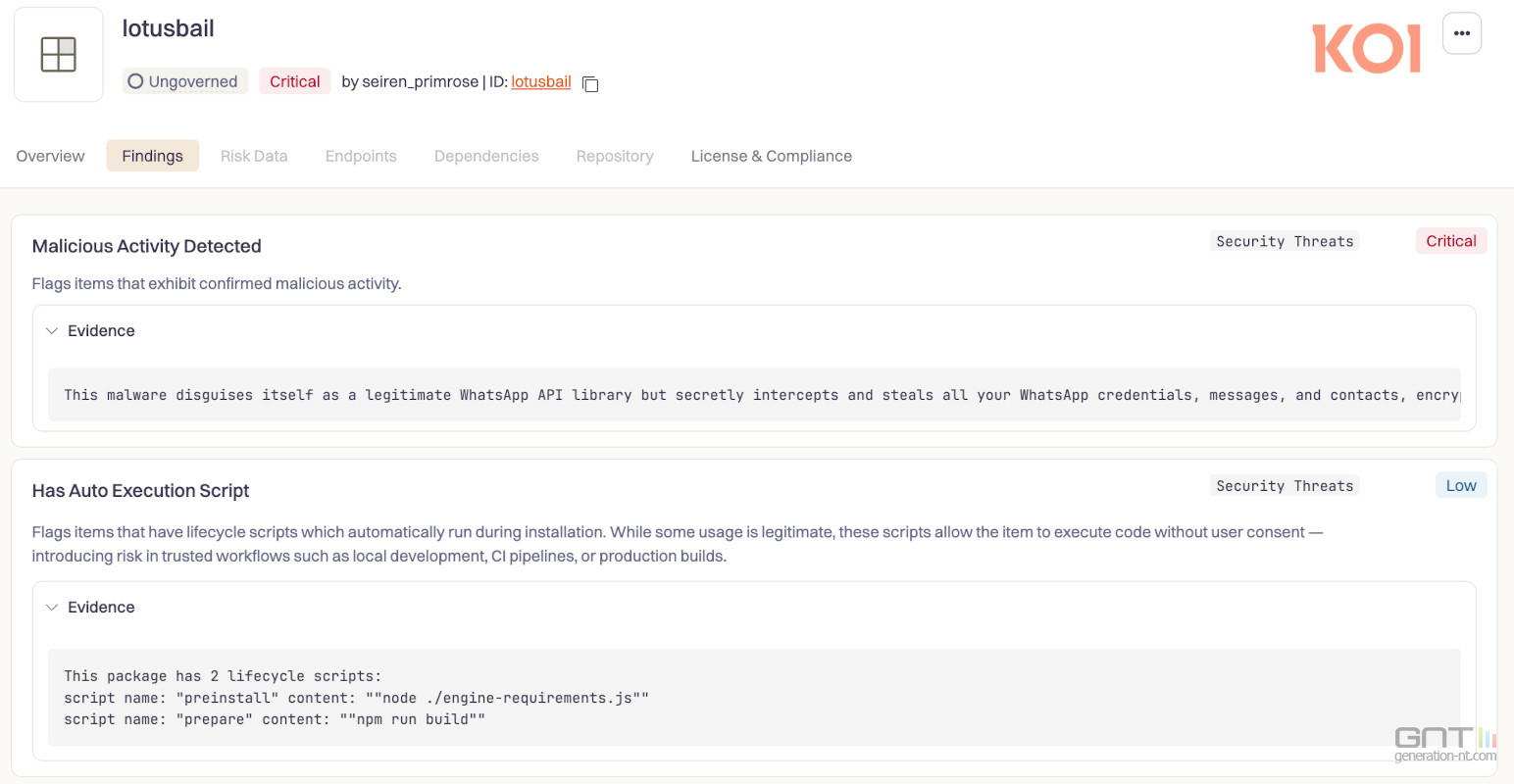 Au nom de " lotusbail ", un paquet malveillant hébergé sur le registre npm a été identifié par les chercheurs en cybersécurité de Koi Security. Il se présente comme une alternative fonctionnelle à une bibliothèque populaire pour l'API WhatsApp Web.