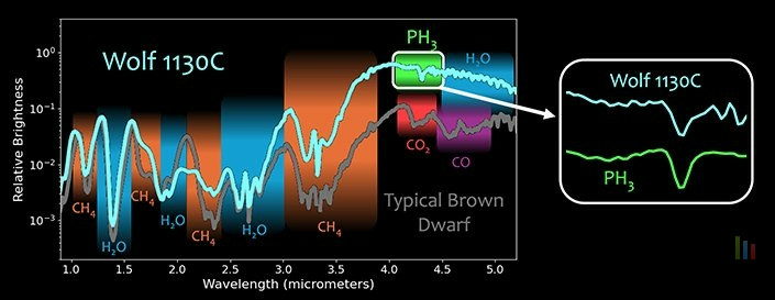 Grâce à la puissance du télescope spatial James Webb (JWST), une équipe internationale a effectivement repéré la présence de phosphine dans l’atmosphère d’une naine brune lointaine, baptisée Wolf 1130C.
