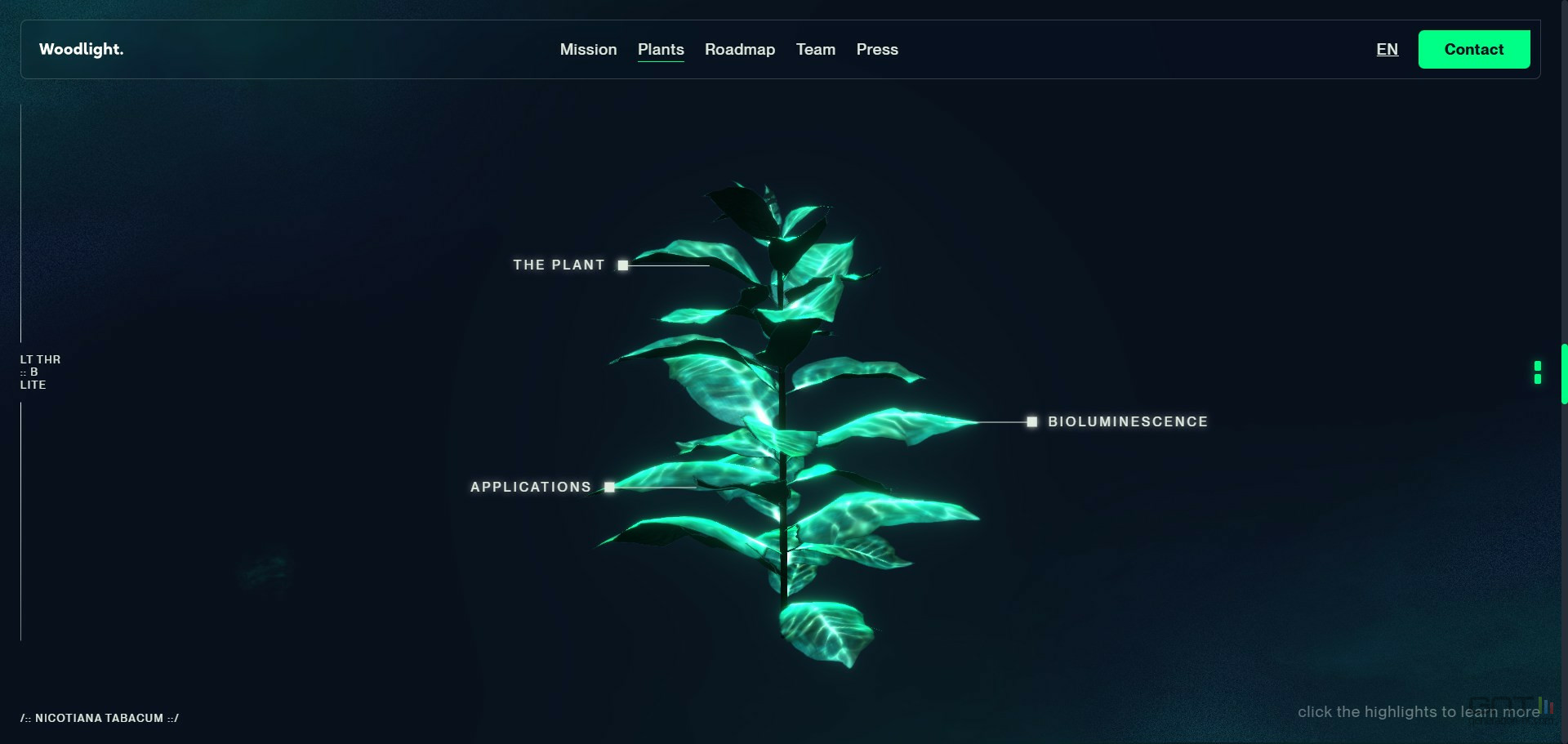 Le projet Woodlight, qui se déroule en partenariat avec des établissements renommés tels que le CNRS et l'Université de Strasbourg, se base sur la bioluminescence. Cela consiste à intégrer dans les plantes les processus biologiques qui autorisent certains êtres vivants à générer de la lumière. Le produit final est une plante qui s'illumine de façon autonome et constante, générant une source de lumière vivante et entièrement naturelle.