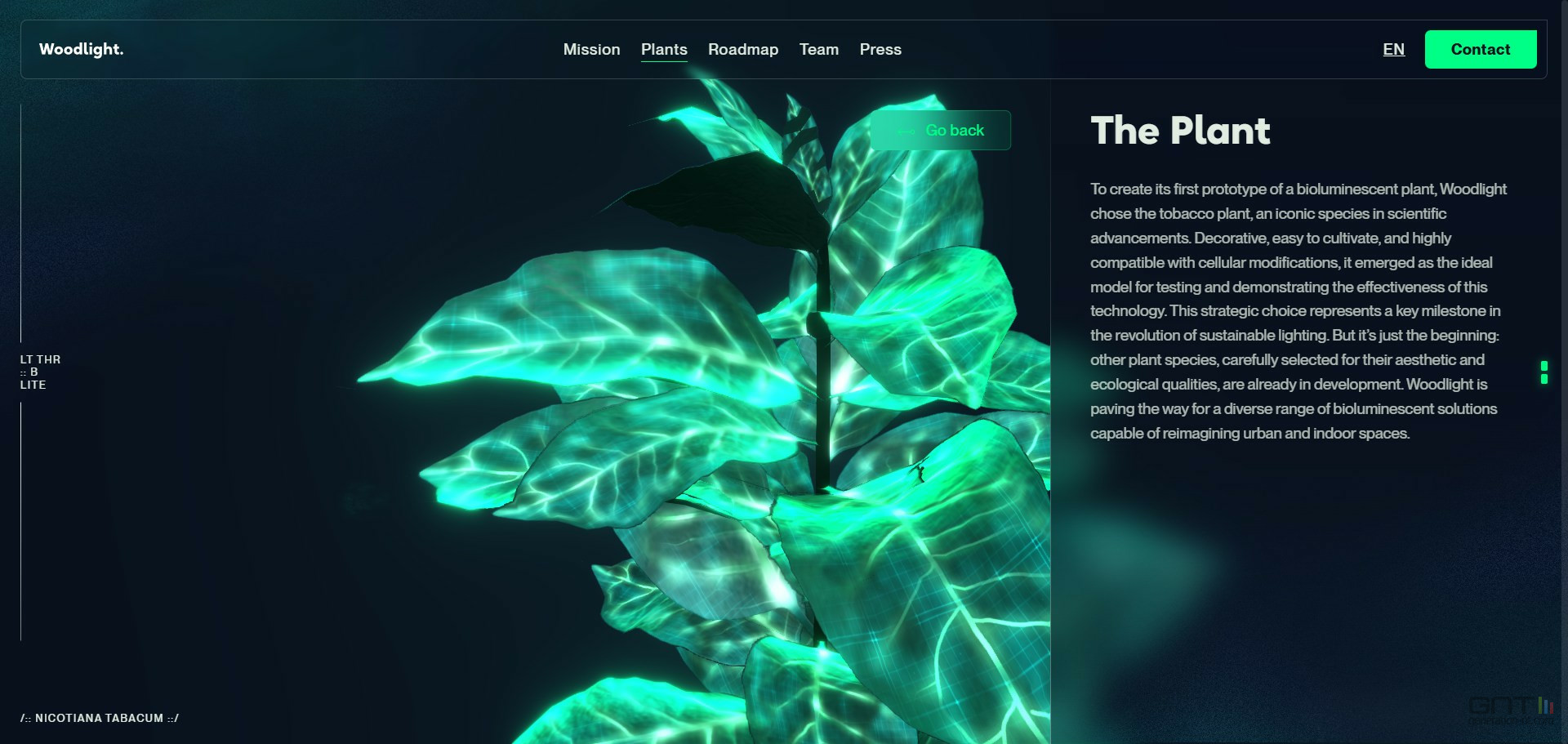 L'entreprise, influencée par la nature et des phénomènes tels que ceux des lucioles, a conçu des plantes capables de générer leur propre éclairage sans aucune consommation d'énergie. Suite à une récente collecte de fonds de 500 000 €, le projet démarre sa phase de préproduction, dans le but de transformer notre relation à l'éclairage.