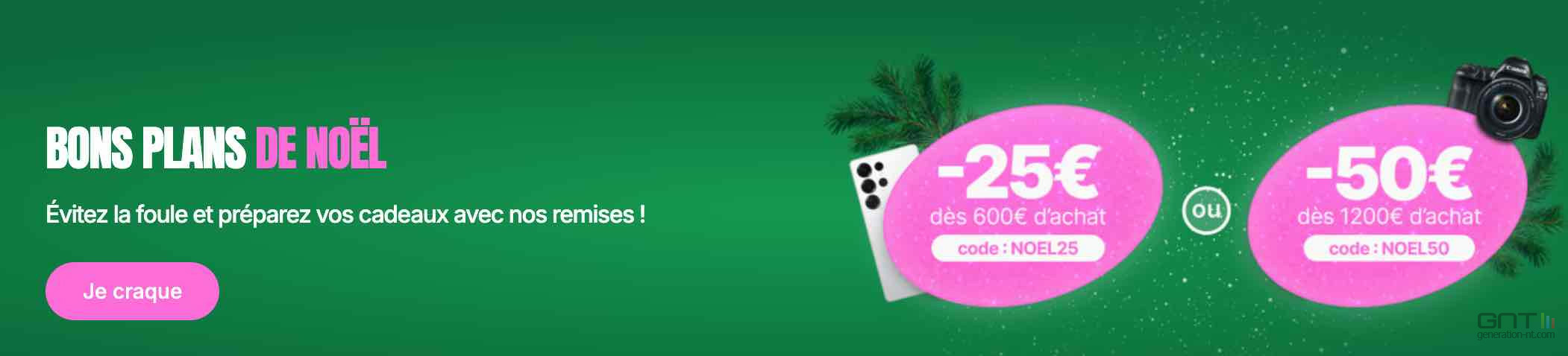 - -25 € dès 600 € d’achat sur tout le site avec le code NOEL25