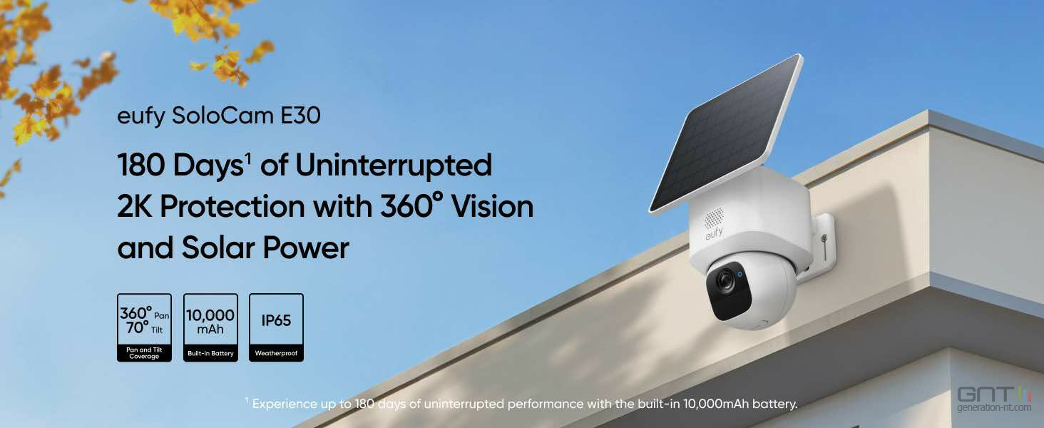 - Caméra de surveillance WiFi extérieure sans fil eufy SoloCam E30 à 79 € soit -47% (2K, rotation 360°, suivi IA, panneau solaire intégré)