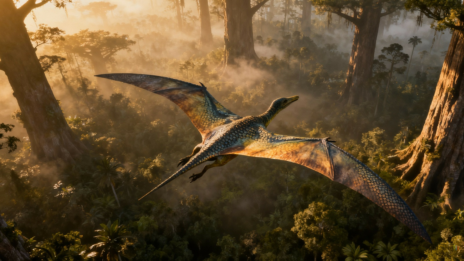 Une nouvelle étude, s'appuyant sur le fossile d'un lointain parent, révèle comment les ptérosaures ont conquis le ciel. Contrairement aux oiseaux, dont les aptitudes sont héritées de leurs lointains ancêtres, ils ont développé les structures neurologiques du vol de manière indépendante et avec un cerveau modeste, remettant en cause l'idée qu'un grand cerveau est un prérequis pour voler.