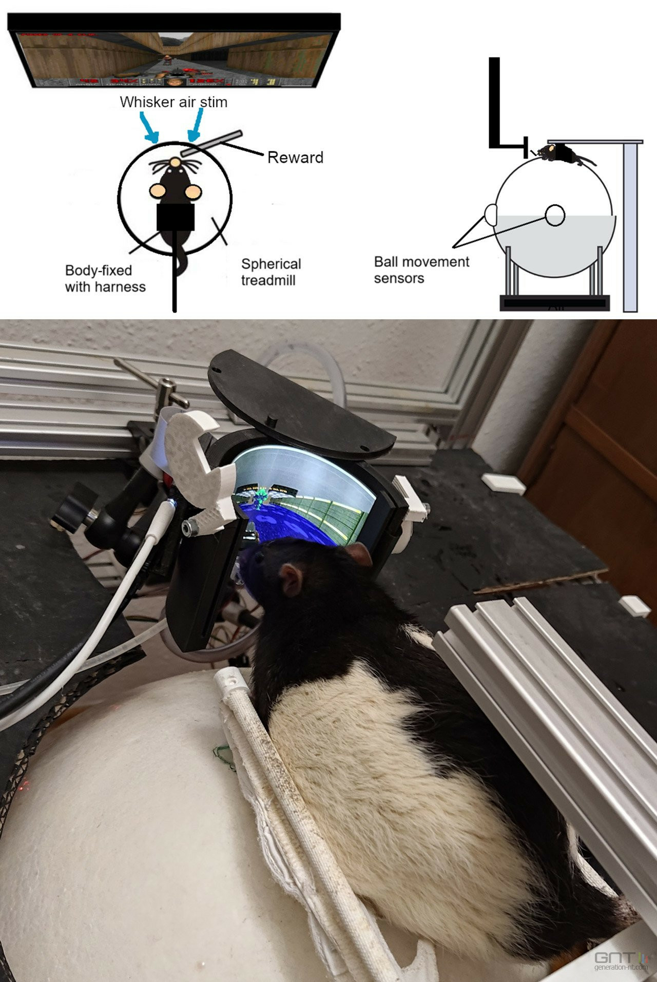 Absolument pas. Le système est entièrement non invasif. Il n'y a aucun implant cérébral ni chirurgie. Les rats sont simplement placés dans un harnais confortable sur une boule roulante et apprennent par le renforcement positif (récompense).