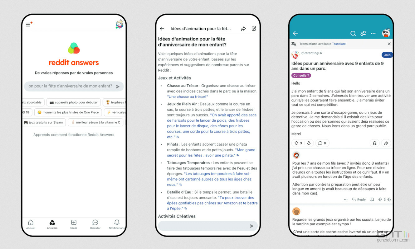 Reddit Answers permet d'interroger la plateforme en langage naturel et via une interface conversationnelle qui s'appuie sur un modèle d'IA de Google. La fonctionnalité synthétise les conversations et publications pour fournir des réponses directes et contextualisées, avec des liens vers les discussions originales.