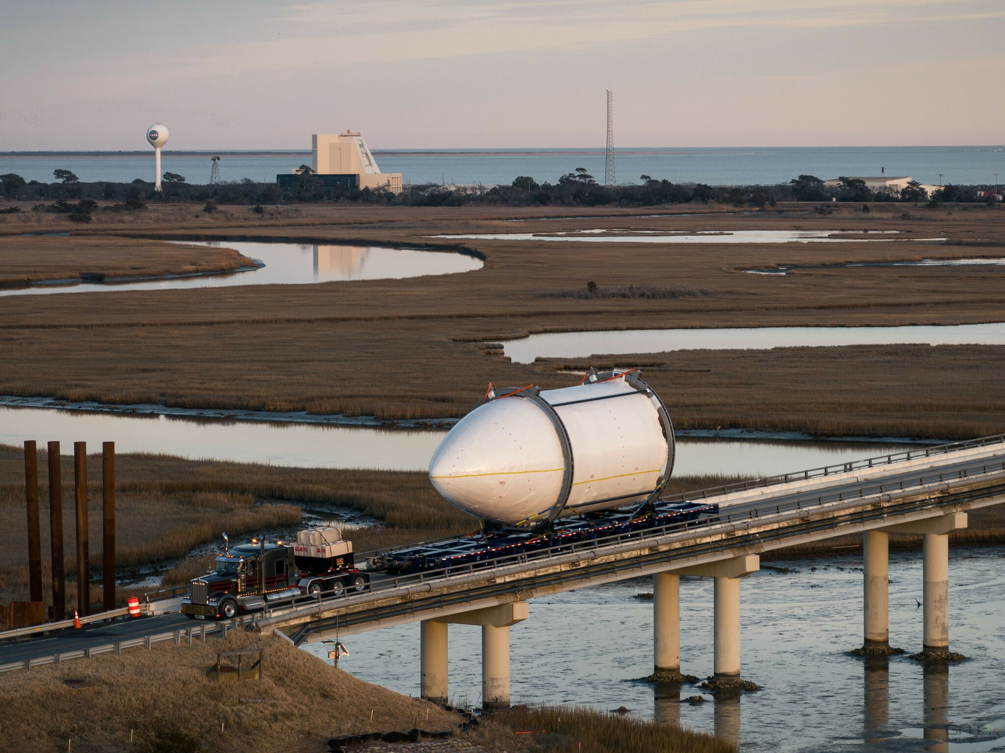 Après un périple de près de deux mois par barge et camion depuis les installations de test en Californie, la coiffe du lanceur, surnommée avec humour Hungry Hippo, a finalement atteint le complexe d'assemblage et d'intégration de Rocket Lab sur Wallops Island, en Virginie.