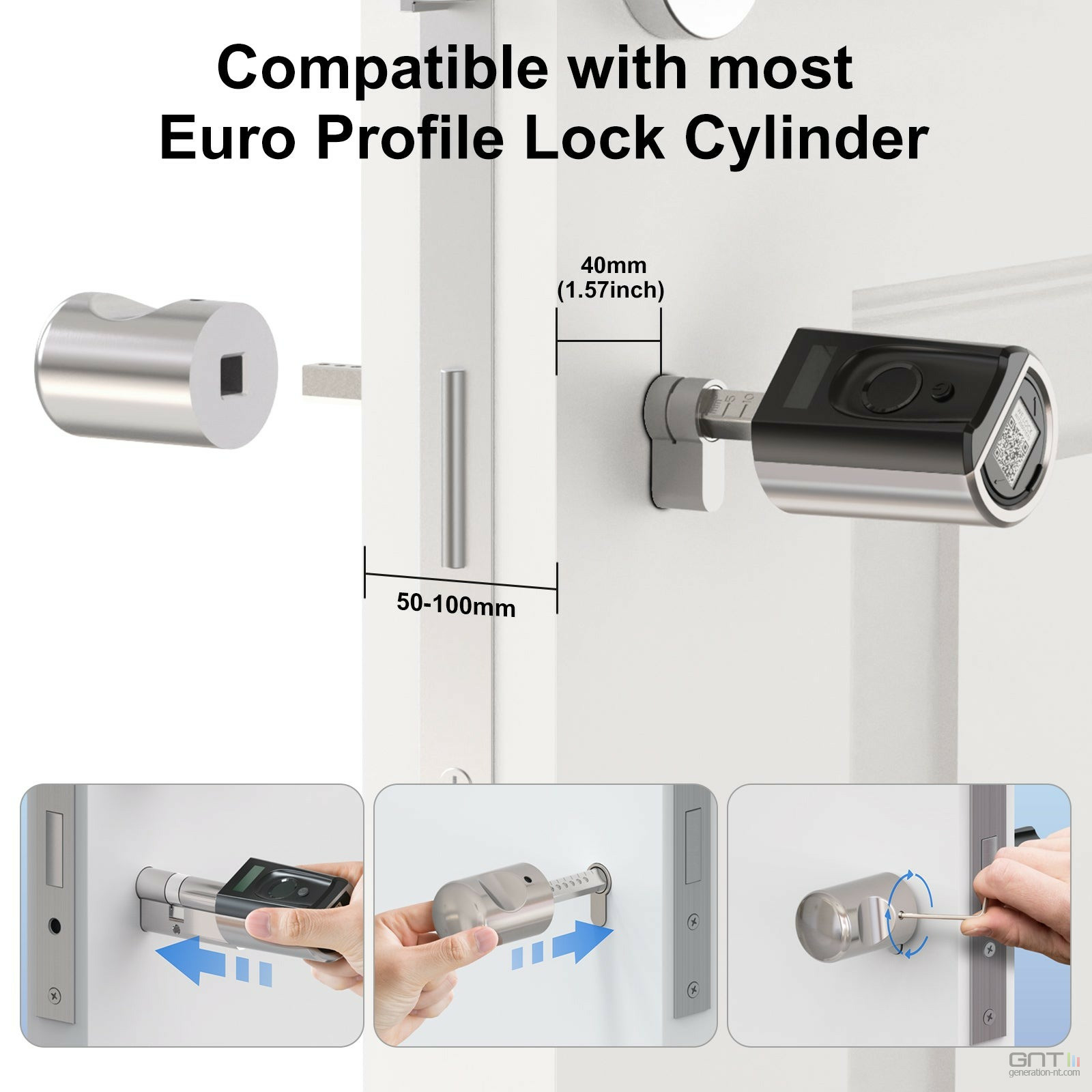 Le cylindre s'installe en moins de 10 minutes à la place de votre ancien cylindre de profil européen, sans aucun perçage. Il est ajustable pour s'adapter à la plupart des portes d'une épaisseur de 50 à 100 mm.