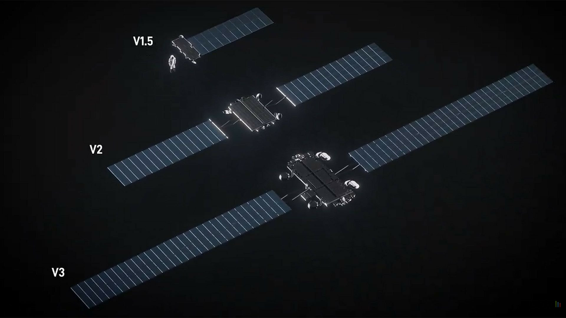 Dans une vidéo publiée récemment, SpaceX a mis en scène la différence de taille spectaculaire entre ses générations de satellites Starlink. À côté d'un astronaute, les anciennes versions V1.5 et V2 Mini paraissent presque modestes.