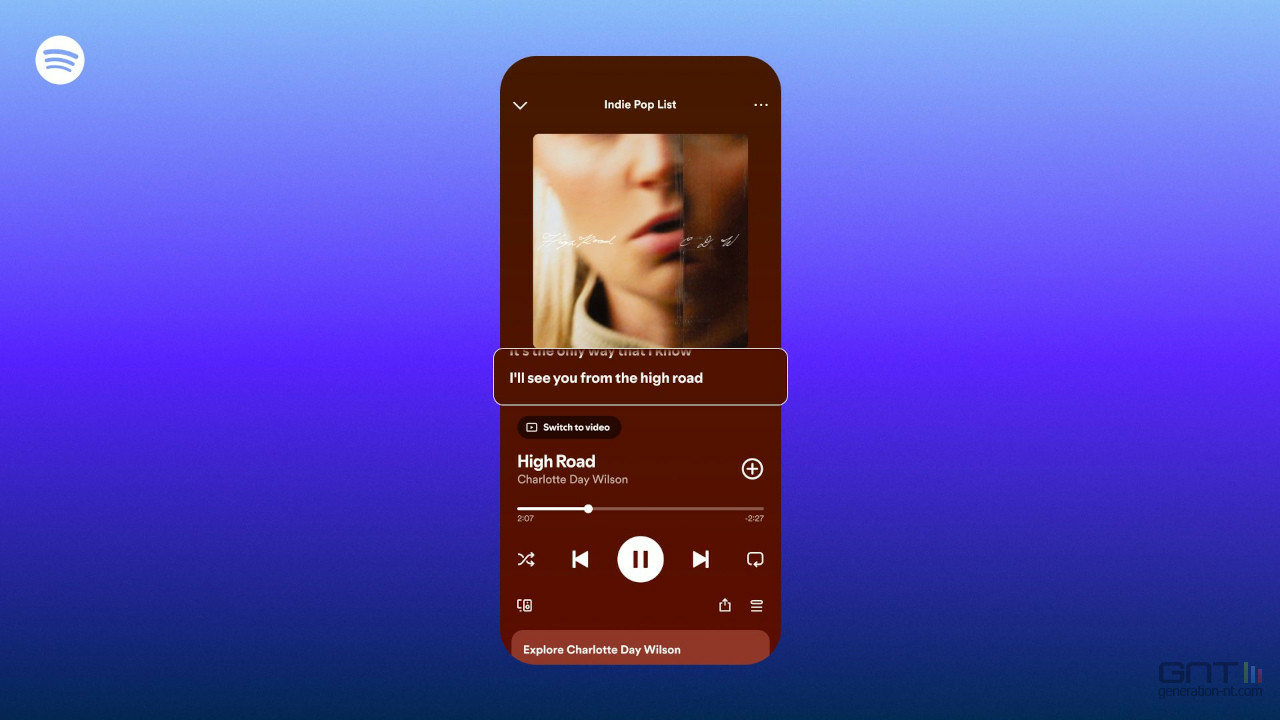 Spotify introduit également les aperçus de paroles, une modification d'interface qui affiche les paroles directement sous la pochette de l'album ou le clip Canvas. Ce petit encadré permet de suivre les mots sans avoir à basculer en mode plein écran.