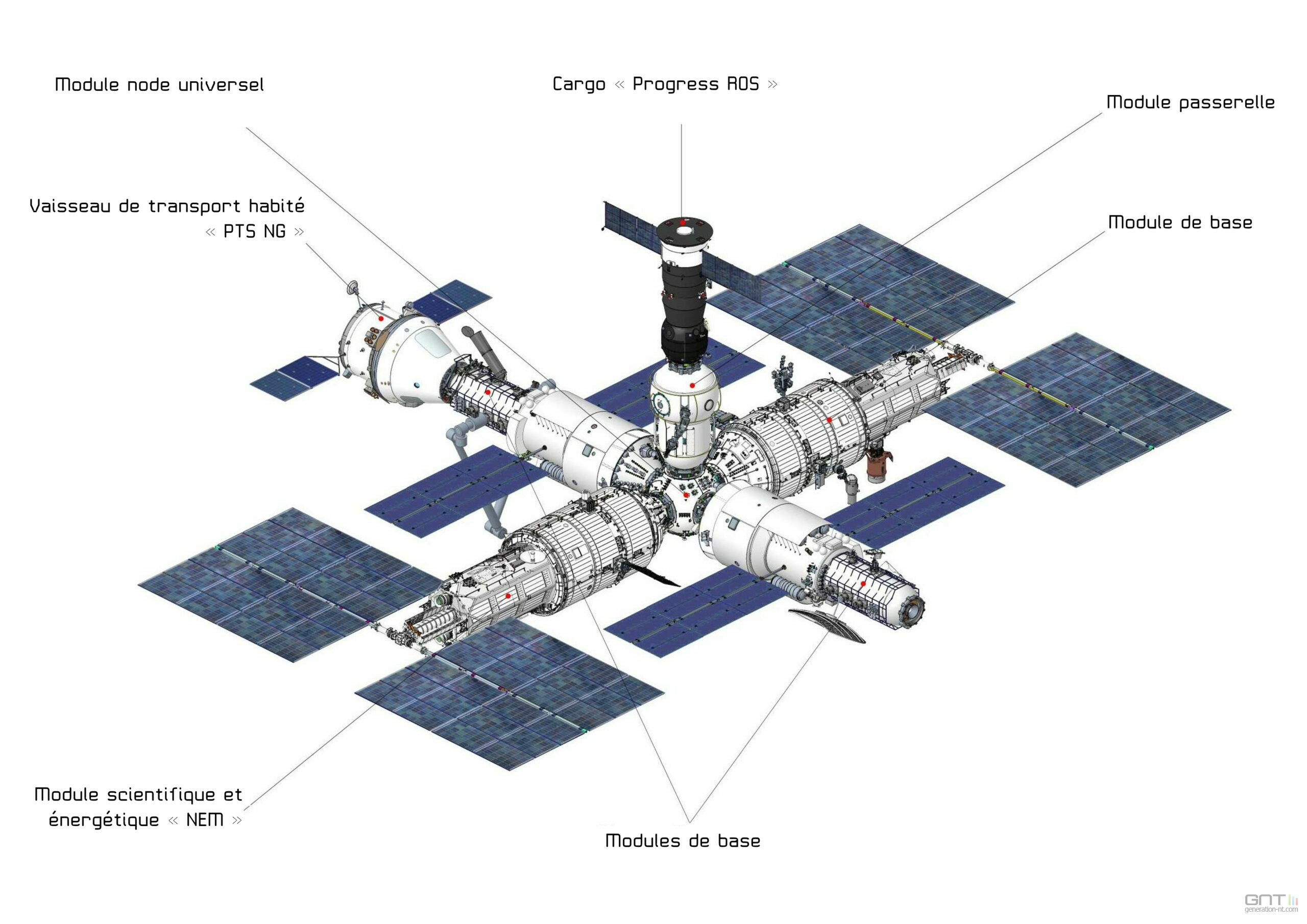 Le projet initial d'une station orbitale de nouvelle génération, baptisée ROS, a été mis de côté au profit d'une solution bien plus modeste, mais surtout bien moins coûteuse : la récupération des segments russes de l'ISS vieillissante.