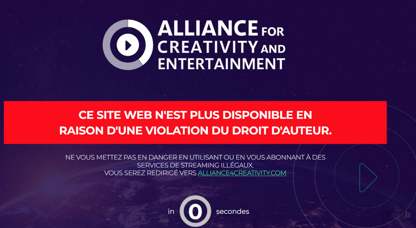 Il a également transféré le contrôle de la totalité des 25 domaines associés à l'ACE. Désormais, toute tentative d'accès aux sites redirige les visiteurs vers la page Watch Legally de la coalition afin de présenter des alternatives légales.