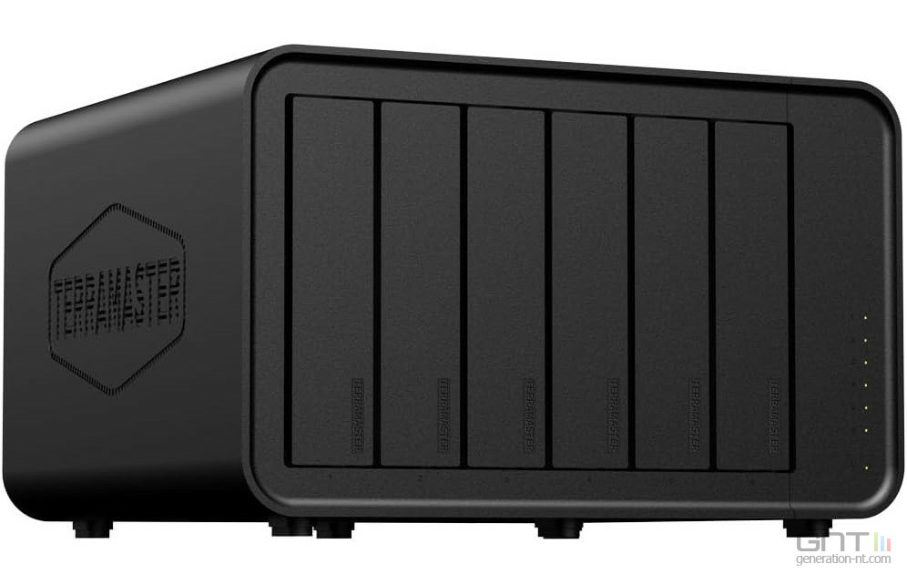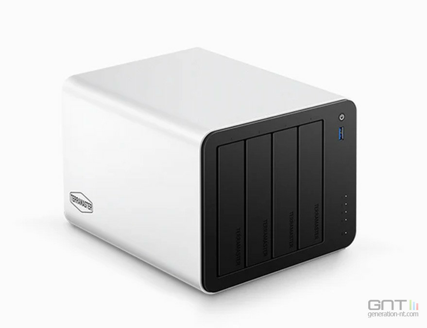 Pour des besoins plus conséquents, le Terramaster F4-425 Plus propose des caractéristiques proches avec un processeur Intel N150 et 16 Go de RAM DDR5 et toujours 2 ports 5 gigabits Ethernet mais avec une capacité de stockage de 144 To grâce à ses 4 baies SATA et 3 emplacements M.2.