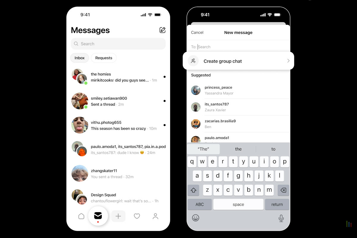 Pour l'application Threads et ses 400 millions d'utilisateurs actifs par mois, Meta annonce le déploiement à l'échelle mondiale des discussions de groupe, tandis que la messagerie directe dévoilée l'été dernier s'étend à l'Europe au cours des prochains jours.