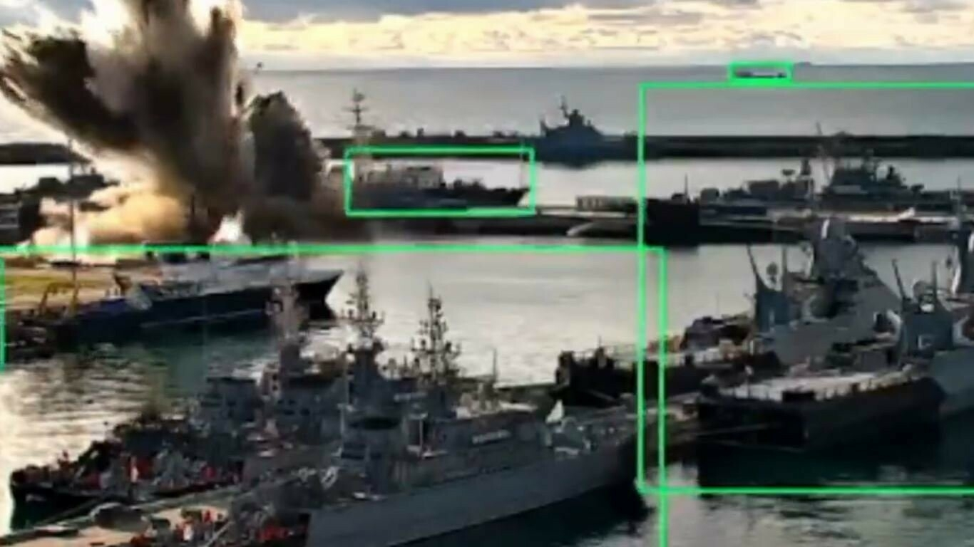 L'Ukraine a diffusé une vidéo de surveillance montrant une violente explosion survenant à proximité de deux sous-marins amarrés à quai. Selon le SBU, le submersible visé, un Varshavyanka, transportait quatre lanceurs de missiles de croisière Kalibr, régulièrement utilisés pour frapper le territoire ukrainien. Les services de Kiev affirment que le sous-marin a subi des "dommages critiques" le rendant "inutilisable".