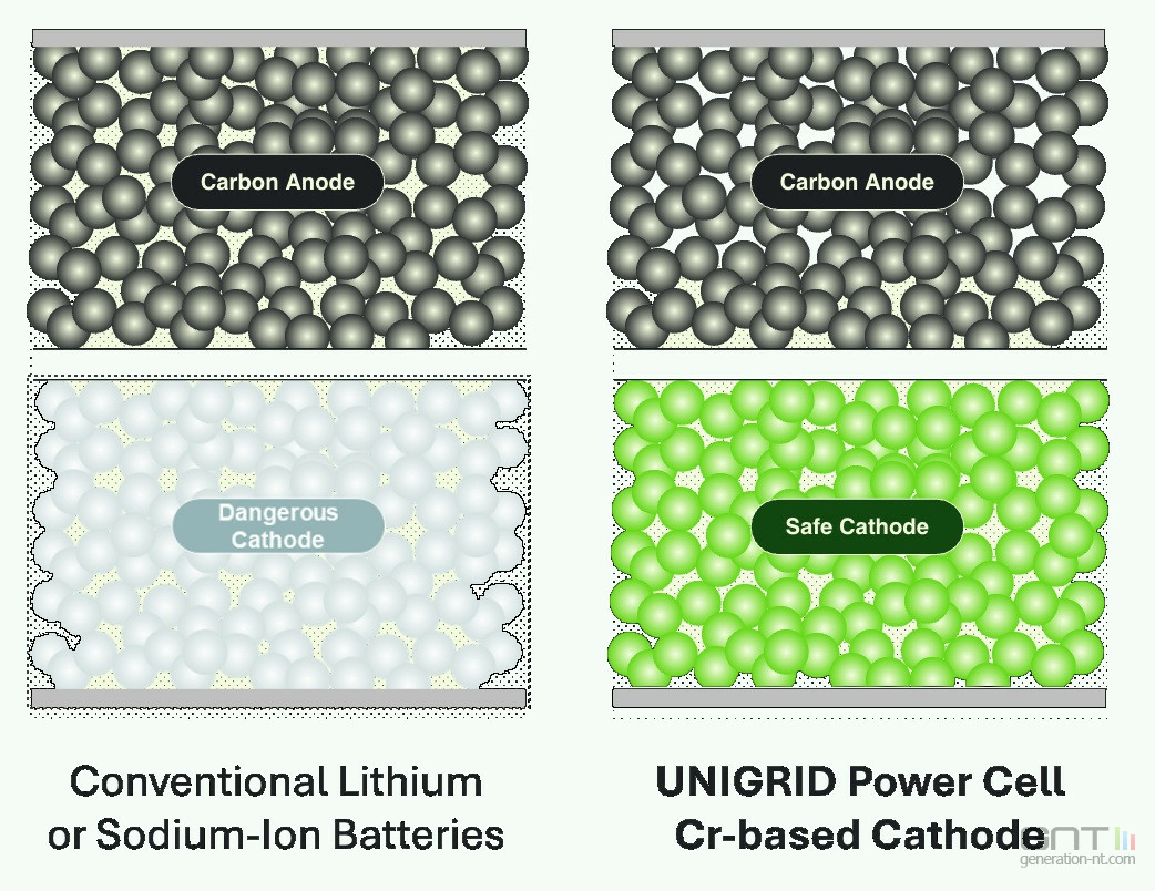 C'est ici qu'intervient Unigrid, une spin-off de l'Université de Californie à San Diego (UCSD). Fondée par Darren Tan et Erik Wu, l'entreprise a développé une chimie sodium-chrome-oxyde (NaCrO₂) qui permet de concevoir une batterie sodium-ion plus petite et plus légère.