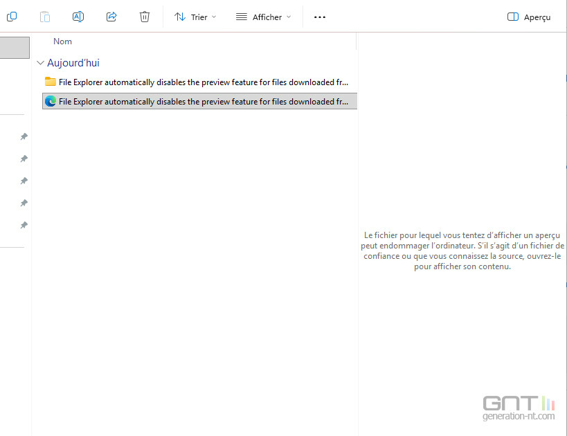 Depuis le déploiement du Patch Tuesday d'octobre, des utilisateurs ont constaté un changement sur Windows et avec l'Explorateur de fichiers qui refuse d'afficher un aperçu pour les fichiers téléchargés sur internet.