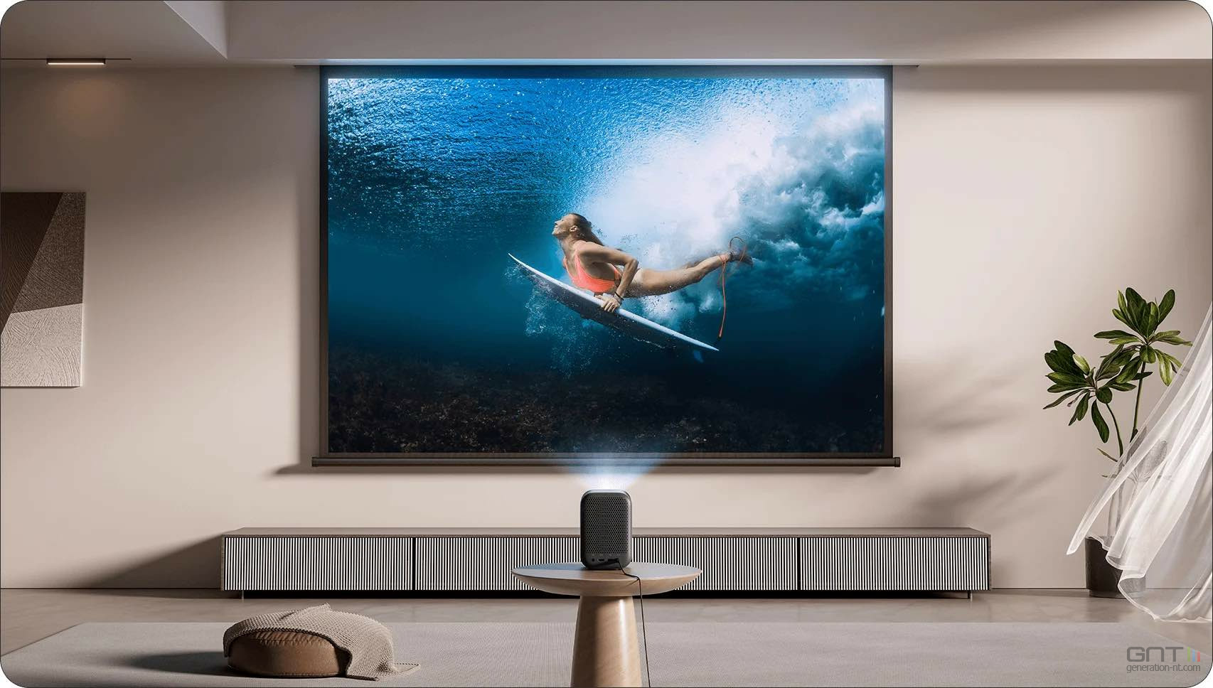 Le projecteur intègre Google TV, avec la possibilité d’utiliser l’Assistant Google pour rechercher des contenus, diffuser de la musique, contrôler le projecteur ou vos appareils domestiques connectés, simplement par la voix. La diffusion depuis un téléphone ou une tablette est également possible pour un partage rapide de films, photos et vidéos.