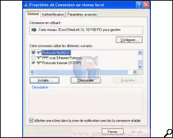 Ensuite rendez-vous dans les propriétés réseau de votre carte réseau, cliquez sur "Installer..." , sélectionnez Protocole puis cliquez sur Ajouter...