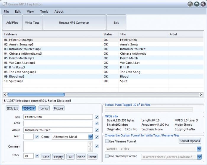 Si vous possédez un grand nombre de musiques et chansons au format MP3 et dont vous souhaitez changer le nom, faites appel au logiciel Reezaa MP3 Tag Editor. Compatible uniquement avec les fichiers MP3, il est capable d'en traiter un grand nombre simultanément. Pour ce faire, il suffit de les importer directement dans l'interface du programme, et il les traitera par lot en les personnalisant selon vos instructions.