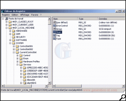 Cliquez sur "Démarrer", "Exécuter" et tapez "regedit". Rendez vous alors à la clé suivante :