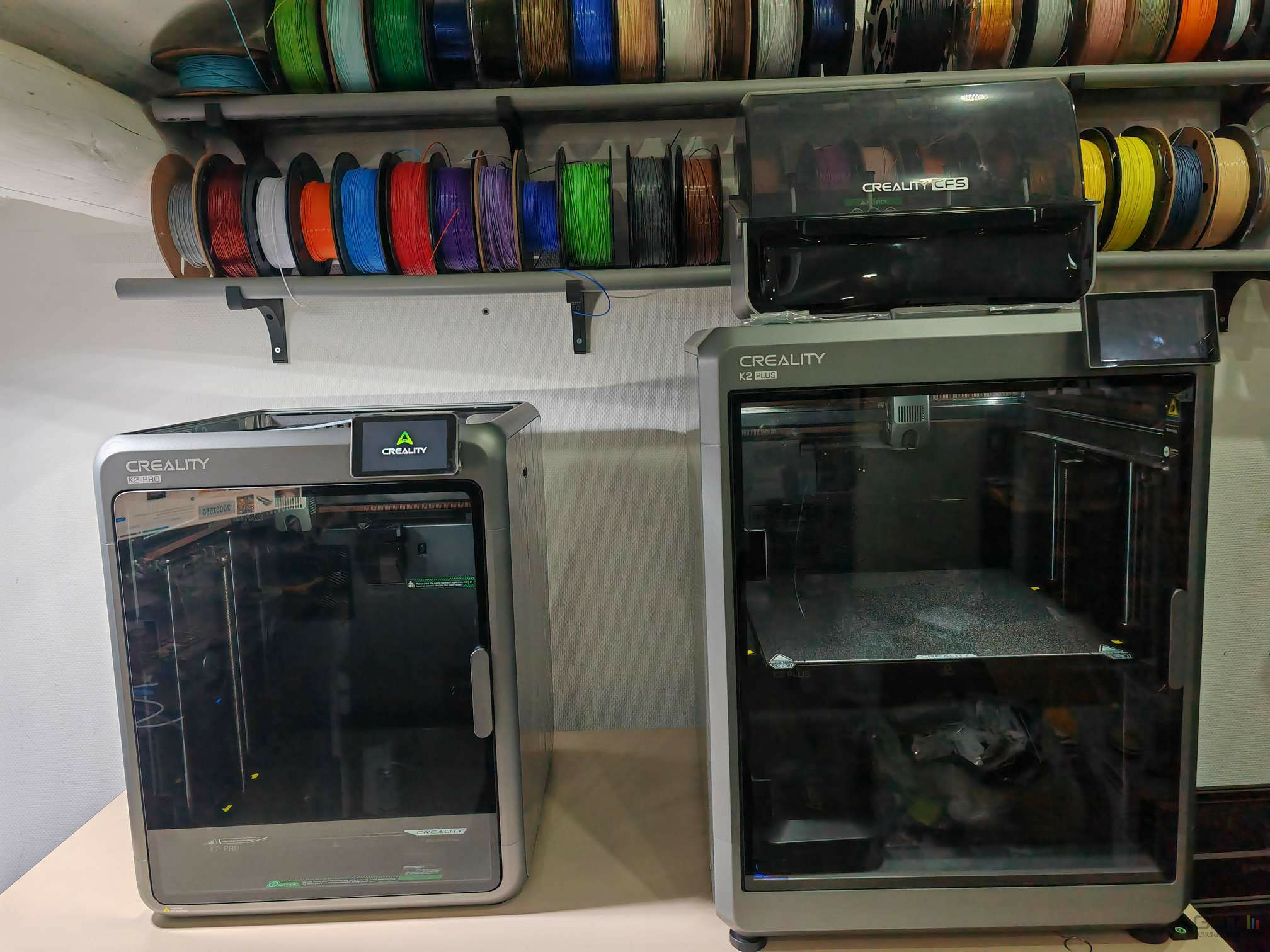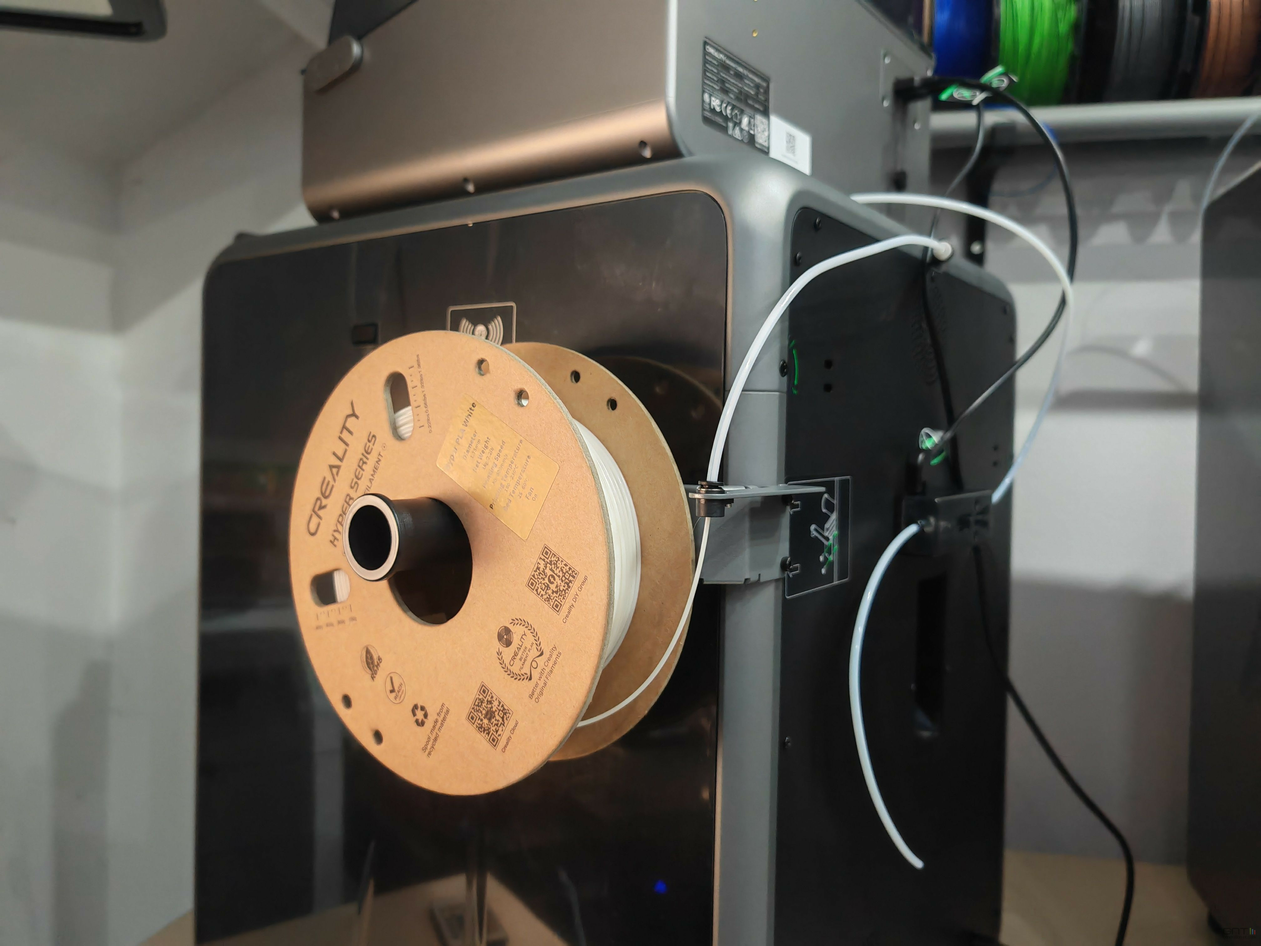 Alors oui, j'aurais pu imprimer avec les bobines gracieusement fournies par Creality... Mais soyons honnêtes : je dispose déjà d'un stock important de filaments qui ne provient pas de la marque. Ce n'est pas que le filament Creality soit mauvais, mais à vrai dire, il est arrivé un peu tardivement sur le marché et j'avais déjà de filaments d'autres marques à disposition... Par ailleurs, il est d'usage de penser que peu d'utilisateurs vont se limiter à utiliser exclusivement du filament provenant de la marque, pour les mêmes raisons, ou plus globalement pour une question de prix ou d'accessibilité... Il était donc pertinent, à mon sens, de soumettre la machine à des filaments différents, y compris pour tenir compte du fait que les profils préréglés dans le slicer ne sont pas forcément optimisés pour ces filaments...