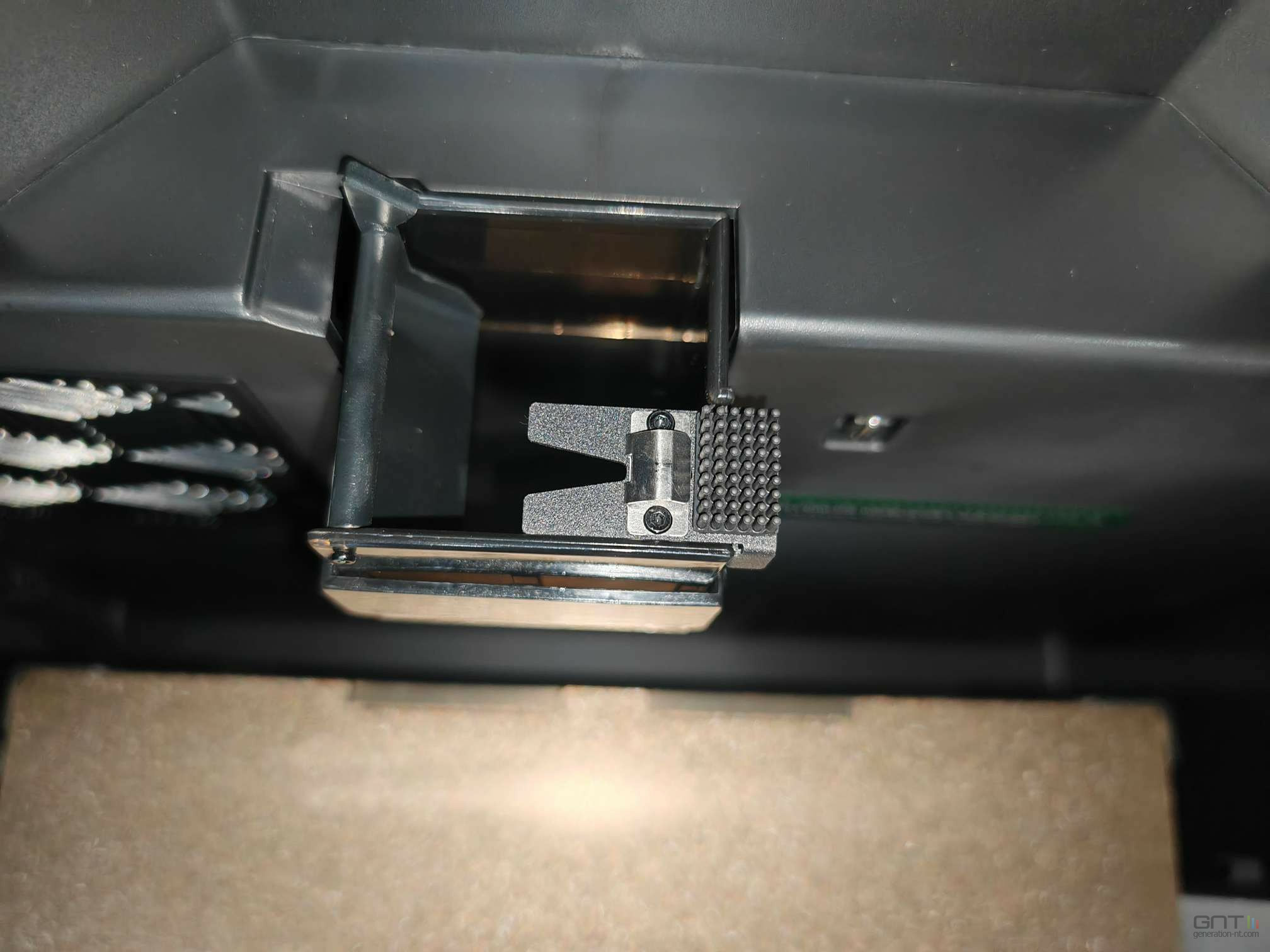 La tête est dotée d'un cutter qui permet de couper le bout du filament déformé par la chauffe, qui entrainerait un blocage dans les tubes PTFE lors de l'extraction comme de la réinsertion... Ce cutter se démarque de ce qui se fait ailleurs sur le marché : il opte pour un système aimanté plus durable dans le temps qu'un ressort et moins sujet aux blocages.
