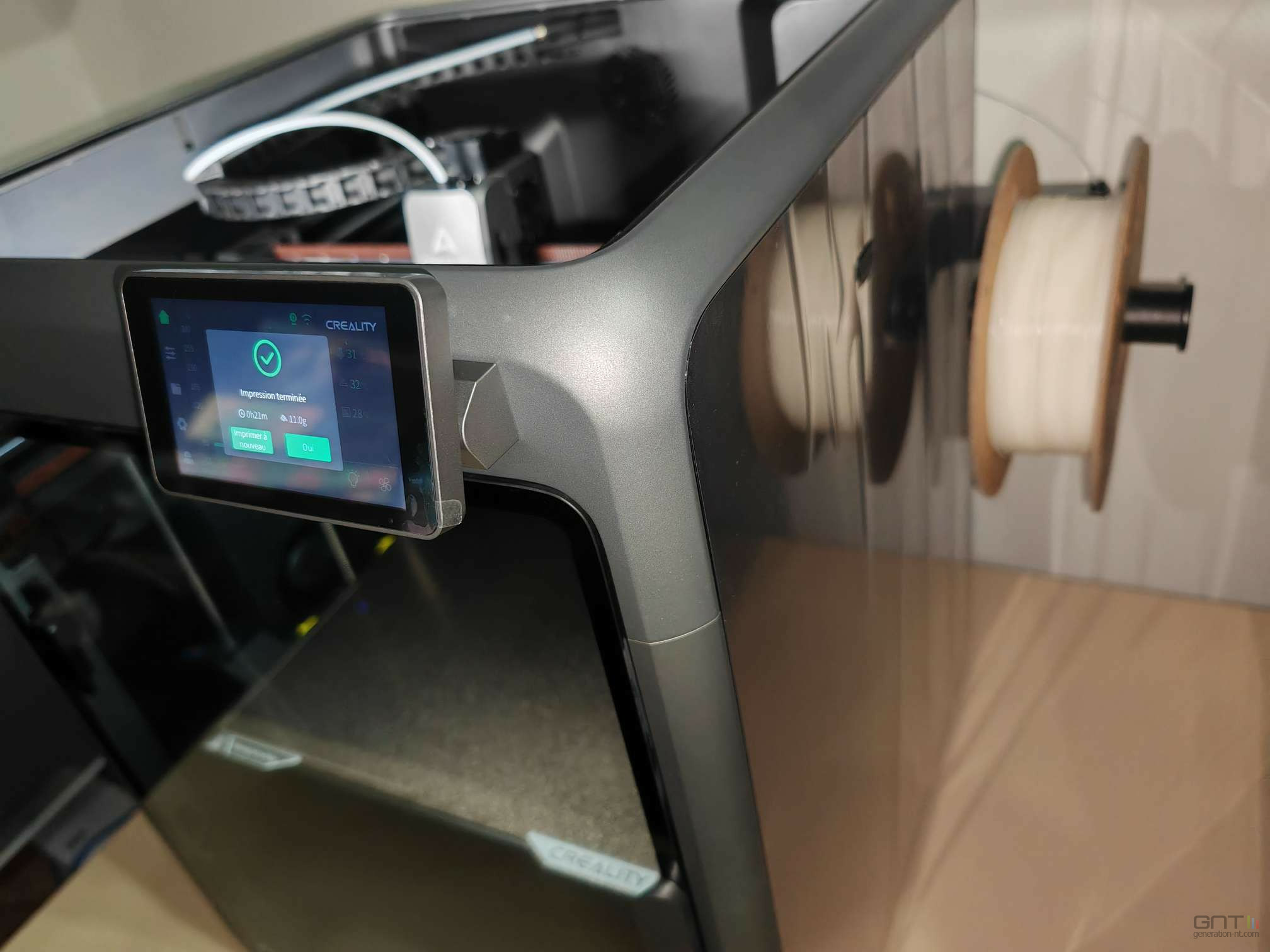 À ce sujet, les choses ont bien évolué côté logiciel pour ce genre de désagrément, sur la K2 Plus avec un firmware immature, ce type de pause entrainait souvent des problèmes imposant l'arrêt de l'impression et donc la perte de temps et de matière engagée jusque là. Désormais, les procédures sont bien plus souples et nous avons pu reprendre l'impression sans encombre.