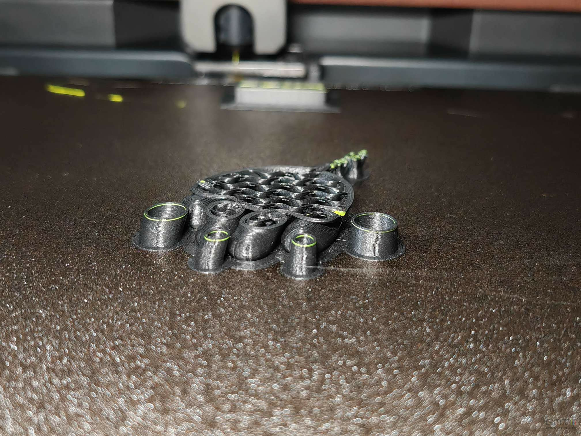 Pour les tests en plusieurs couleurs, j'ai pu tester jusqu'à 5 marques de filaments distincts, en ajoutant une contrainte supplémentaire : le noir utilisé est un filament PLA à la fibre de carbone, qui a tendance à user très rapidement les buses. Ici, la buse renforcée de Creality n'a pas bronché...