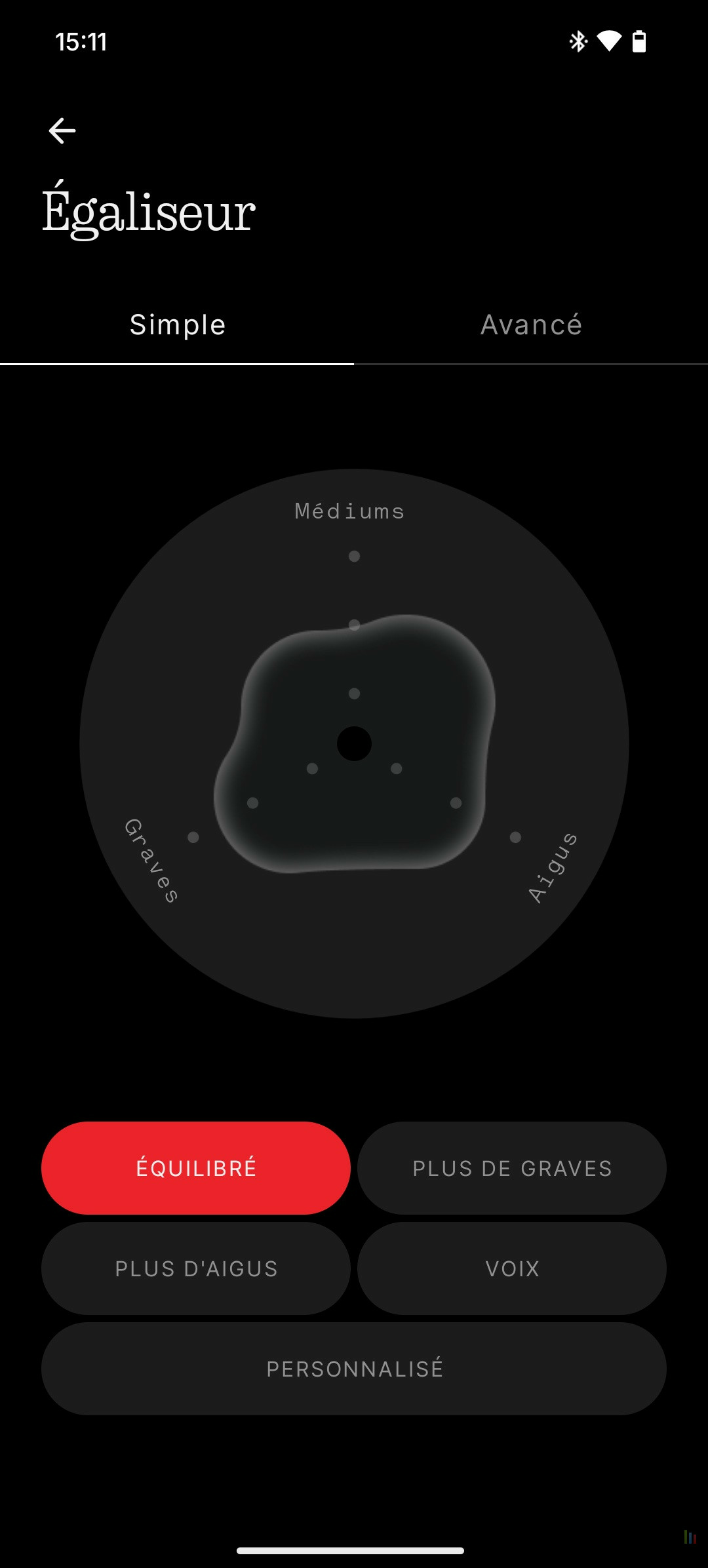 Nothing X propose en outre un égaliseur 8 bandes permettant de choisir un scénario prédéfini ou de choisir soi-même son arrangement.