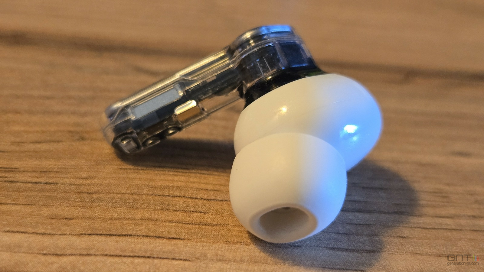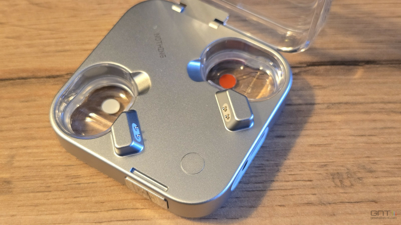 Cela apporte une touche de qualité qui se ressent dès la première prise en main. Le capot transparent laisse apercevoir les oreillettes dont la tige est également transparente et montre l'intérieur du gadget. Pas de doute, on est bien chez Nothing.