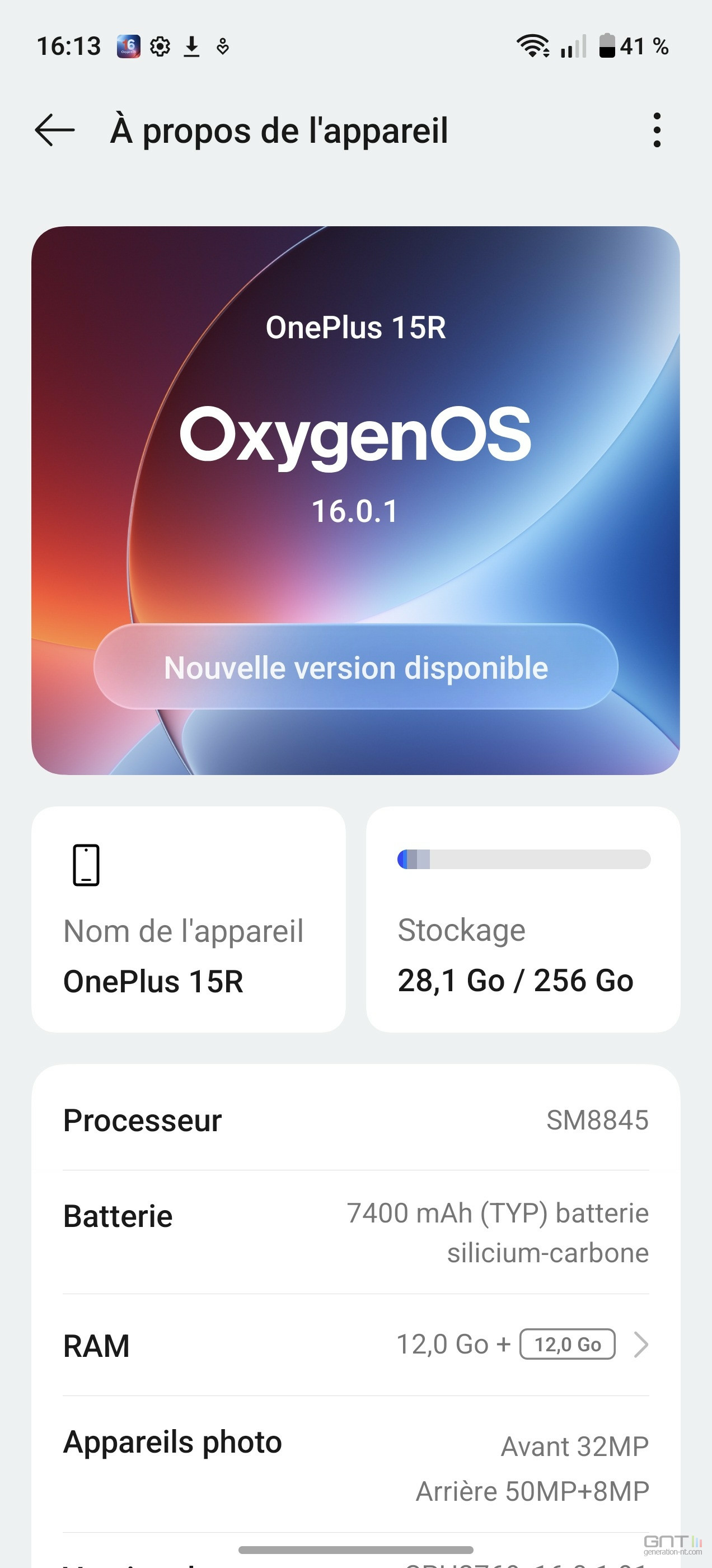 Sur AnTuTu, le OnePlus 15R obtient un score de 2,97 millions de points, à comparer avec les 3,68 millions de points du OnePlus 15. C'est un score plus élevé que les 2,6 millions de points du OnePlus 13 sous Snapdragon 8 Elite de la génération précédente !