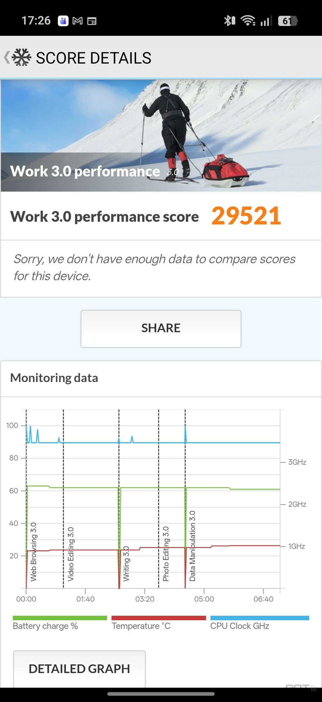 Sur Geekbench 6, le smartphone s'offre des scores de 3625 points en test single core et 10830 points en test multicore, confirmant les capacités CPU du SoC de Qualcomm, tandis que le benchmark synthétique PCMark le crédite de 29521 points.