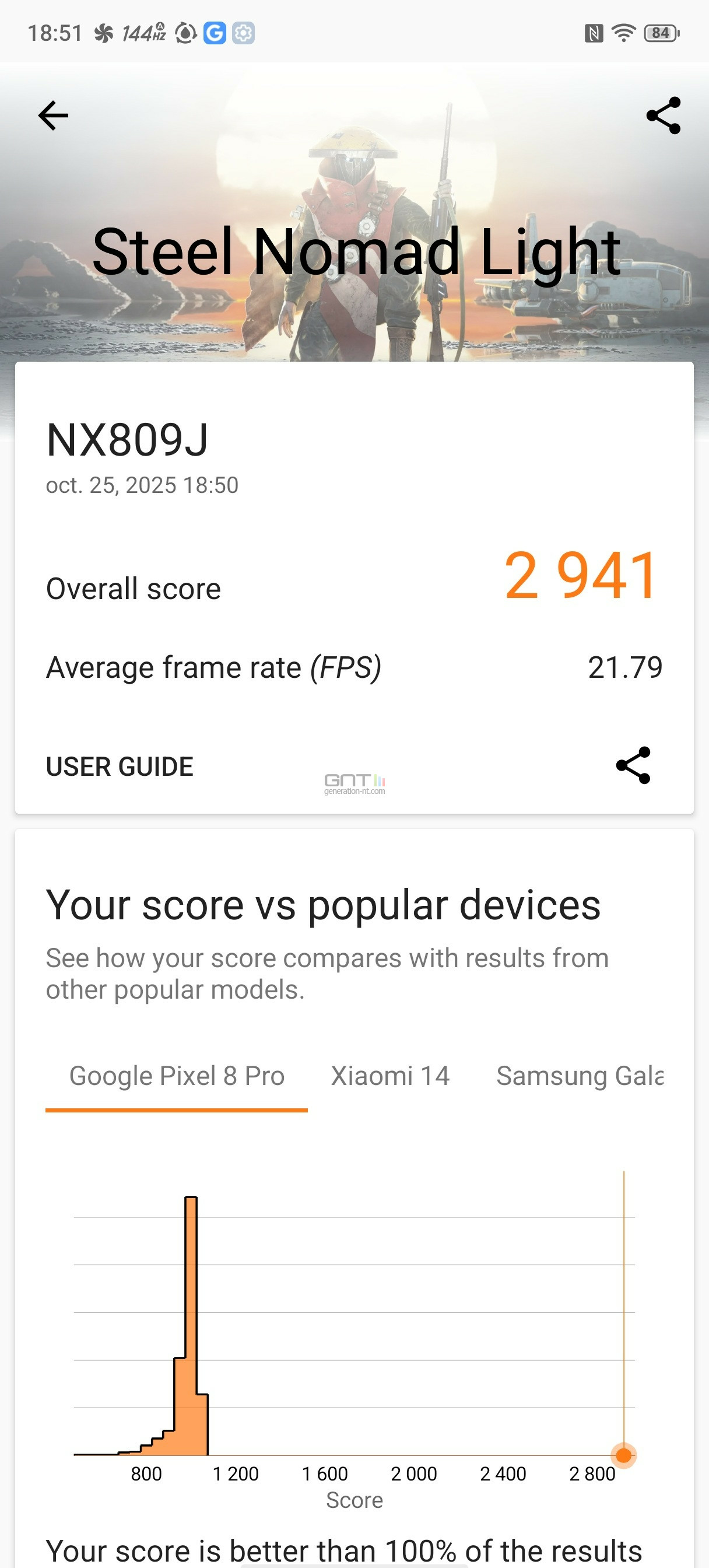 - Steel Nomad Light : 2941 points / 21,79 fps