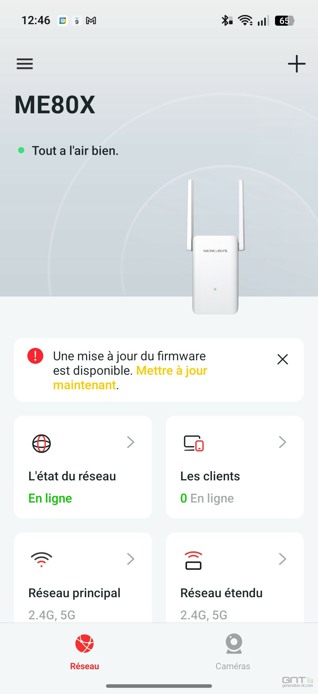 On l’a dit, l’avantage de créer un compte MERCUSYS et d’installer l’application mobile est que cela permet d’accéder à l’ensemble des paramètres du routeur. On pourra vérifier le bon fonctionnement du répéteur ME80X, des bandes réseau supportées et des équipements connectés.